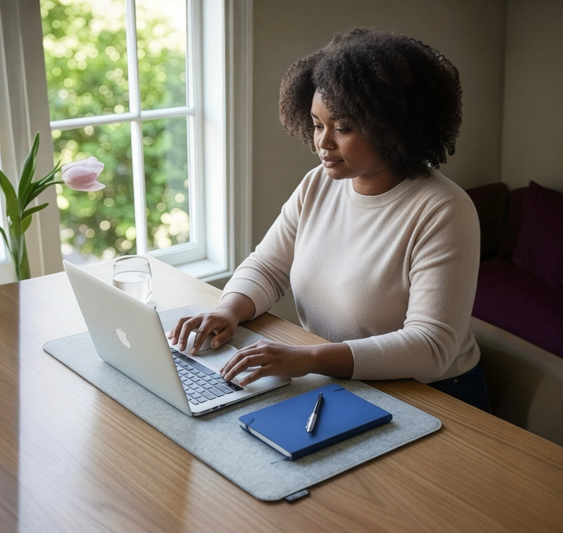 The soft, non-slip base ensures your mat stays in place while protecting your desk surface.